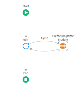Step17:Now double click for Server action and add For Each Tool from left side pane. And add CREATE OR UPDATE Action and make cycle connectivity for for each and Action.