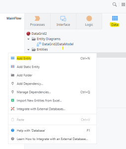 Step2: Search “Data Grid” from search area and click the data grid.