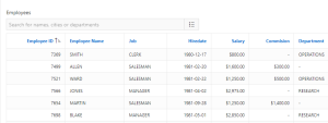 - Default sorting is set to column “Salary” with direction “descending”