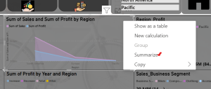 - Right-click the visual and select Summarize.