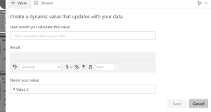 To customize the summary or add your own insights, use dynamic values. You can map text to existing fields and measures or use natural language to define a new measure to map to text. For example, to add information about the number of returned items in the sample file, add a value.