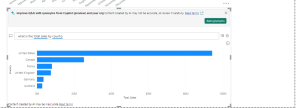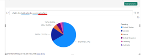 To customize your visual, select a suggested question or enter text in the Q&A question field, where it says Ask a question about your data. In this example, we select the suggestion top sales by country
