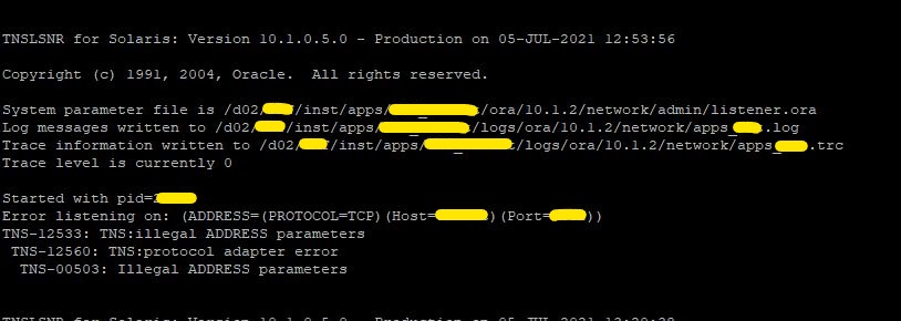 - Remove invalid host names in $TNS_ADMIN/sqlnet.ora file