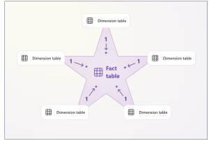 A star schema is a simple, efficient design for organizing data in a way that enhances usability and performance in Power BI. It gets its name from the star-like shape formed when connecting a central fact table to multiple surrounding dimension tables. This design is widely recommended for data modeling in Power BI and other data warehousing systems.