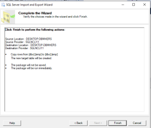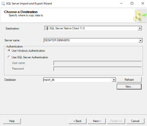 Select destination as sql native client and provide the server name and database name in which we are going import the table