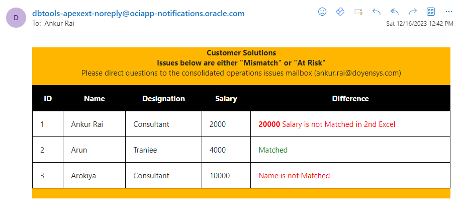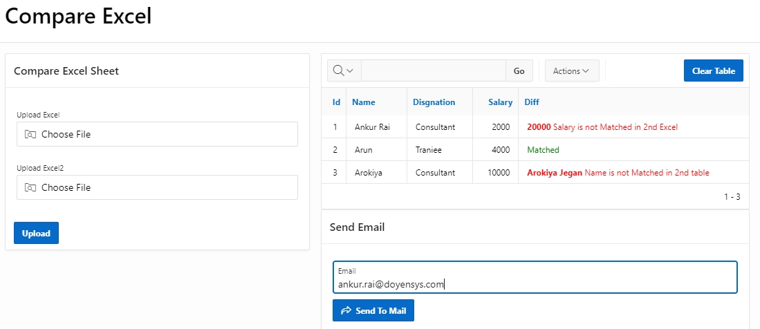 Compare Two Excel Files and send report as E-mail in Oracle Apex