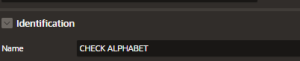 • Name: Give a meaningful name to your dynamic action (e.g., “CHECK APLHABET”).