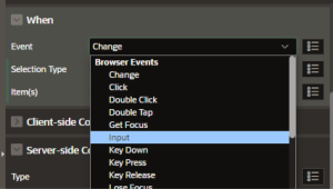 The Input event is a specific type of browser event in Oracle APEX that is triggered when the value of an input element (such as a text field, text area, or other input controls) changes. Unlike the “Change” event, which is only triggered after the input loses focus or when the value is committed, the “Input” event fires immediately as the user types or modifies the input content.