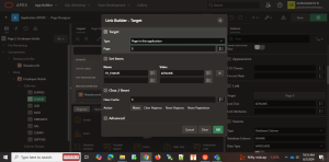 - Create a Hidden Page Item: Add a hidden page item on the target page to hold the passed Employee Name (e.g., “P3_ENAME”).