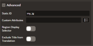 - Assign a Static ID: Give the Interactive Grid a static ID for JavaScript interaction. In this example, use “my_ig.”