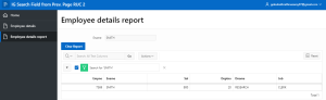 - Verify the Search: Confirm that the Interactive Grid on the target page focuses on the specified search field and executes the search based on the Employee Name.