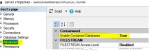Right click on instance → Properties→ Advanced Enable Contained Databases true