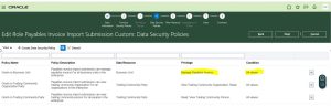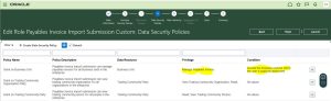 If we assign these roles to users, it will show all BU access in the AP module. We need to change the condition at Data Security Policy (DSP) for the duty role in the below custom roles.