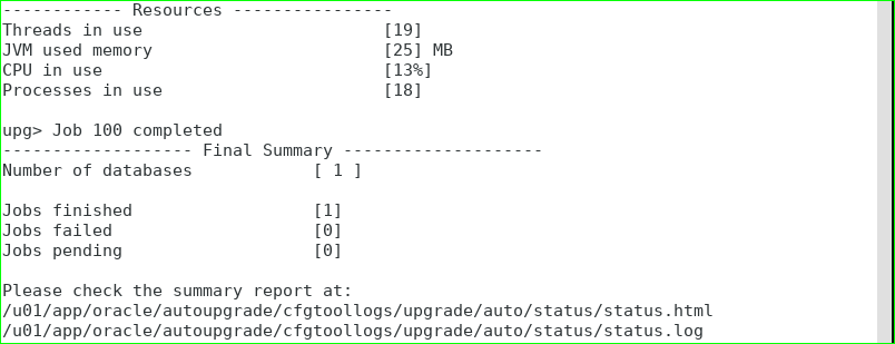 Note :   If you are doing AutoUpgrade on same server it is not necessary to run the upgrade mode you can stop with the deploy mode, our database will be upgraded.