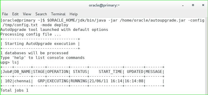 $ORACLE_HOME/jdk/bin/java -jar /home/oracle/autoupgrade.jar -config /tmp/config.txt -mode deploy