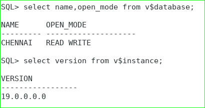 Here I am checking whether database is upgraded or not by running the 19c environment file and logging in to the database and also verify the name, open mode and timezone version.