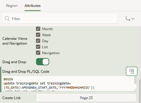 Step 4: To drag and drop the event, we can use the Drag and Drop PL/SQL Code in the attribute section.
