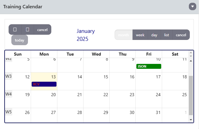 If the requirement arises to customize the calendar for their business need like displaying weekly label with list color customization based on its meeting/event status and system date.