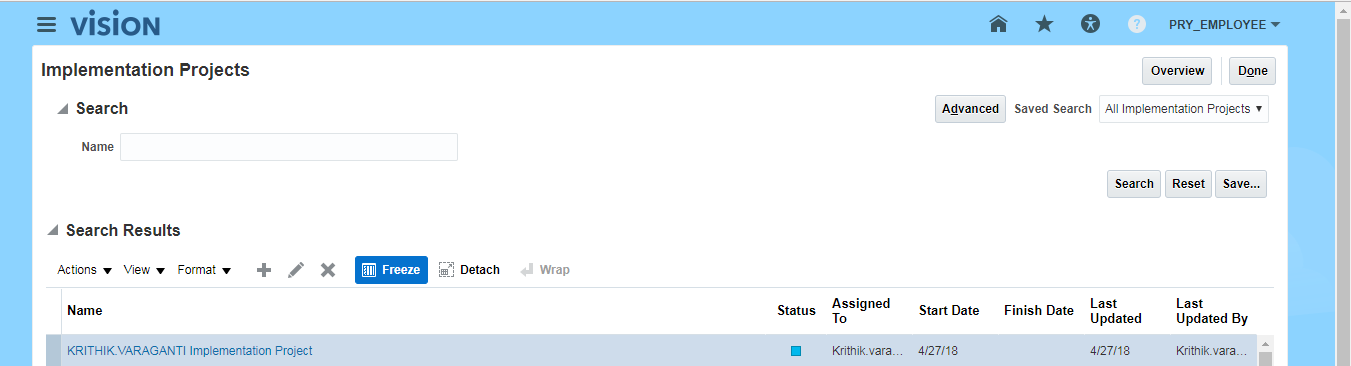 Step7: Click on the project name (hyperlink), it will open the project page.