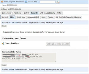 cmo.setConnectionFilter(‘weblogic.security.net.ConnectionFilterImpl’)