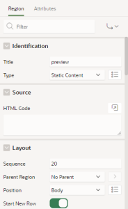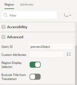 Step 2: Create a new static region to preview the uploaded blob content and provide static id as “previewObject”