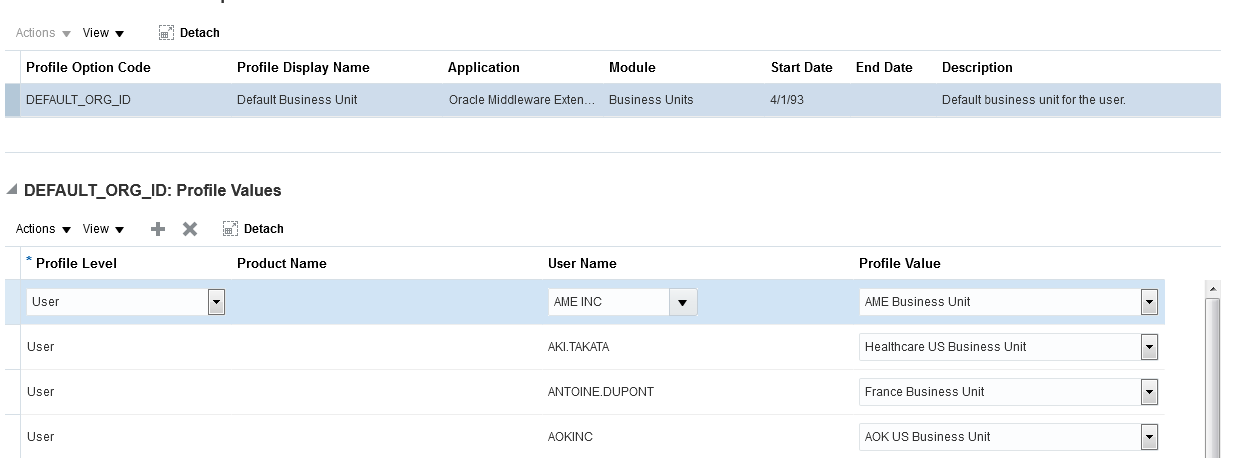 Step10: Search the Profile Display Name has Default BU and Search Results Region We can click on (+) symbol for setting up default BU.