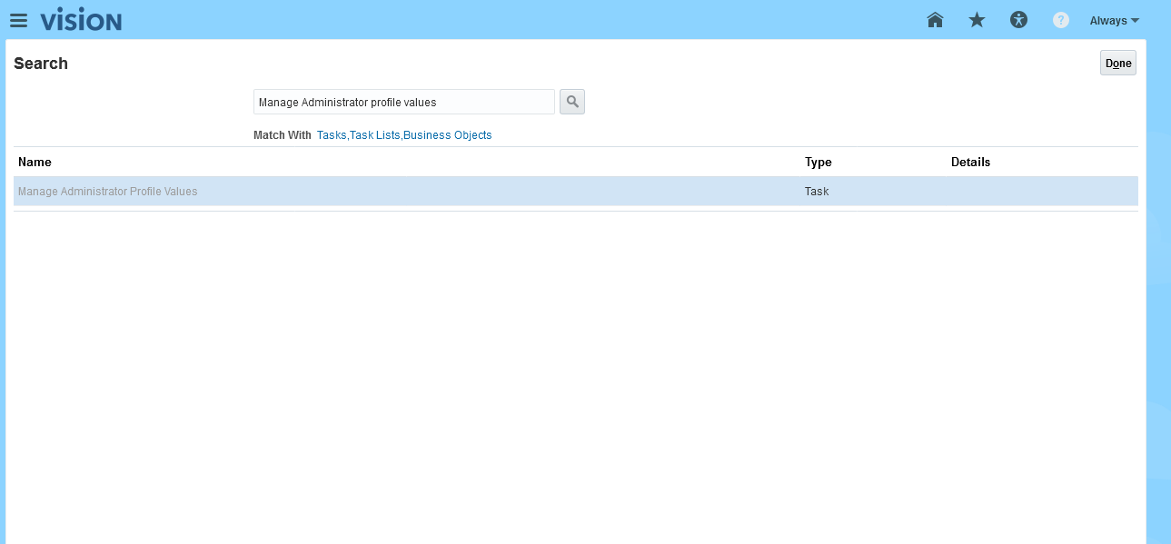 Step8: FSM Home Page search Manage Administrator Profile Values.