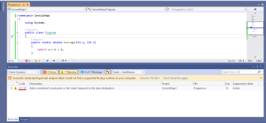 6.In the above, the results are shown in the Error List tab. All code which starts with a ‘S’ are from SonarLint.