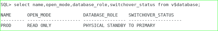 PROD         READ ONLY          PHYSICAL STANDBY   TO PRIMARY