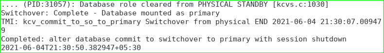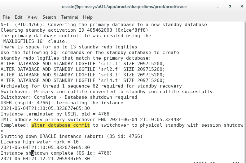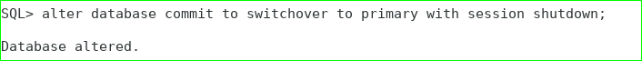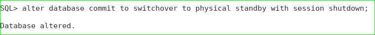SQL> alter database commit to switchover to physical standby with session shutdown;