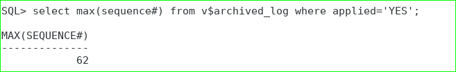 SQL> select max(sequence#) from v$archived_log where applied='YES';