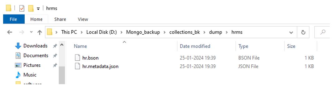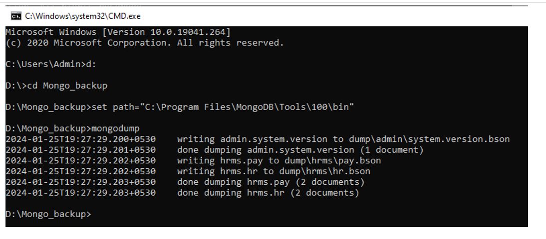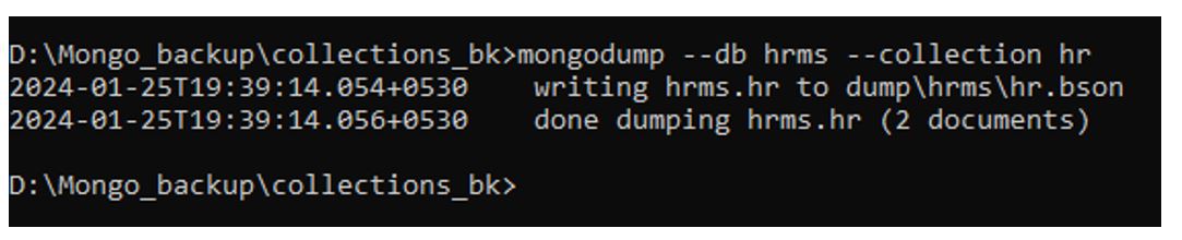 Command: Mongodump –db hrms –collection hr
