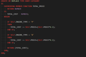 IF SELF.ENGINE_TYPE = ‘D’ THEN TOTAL_COST := SELF.PRICE+(SELF.PRICE*0.1);