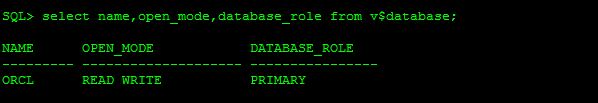 select name,open_mode,database_role from v$database