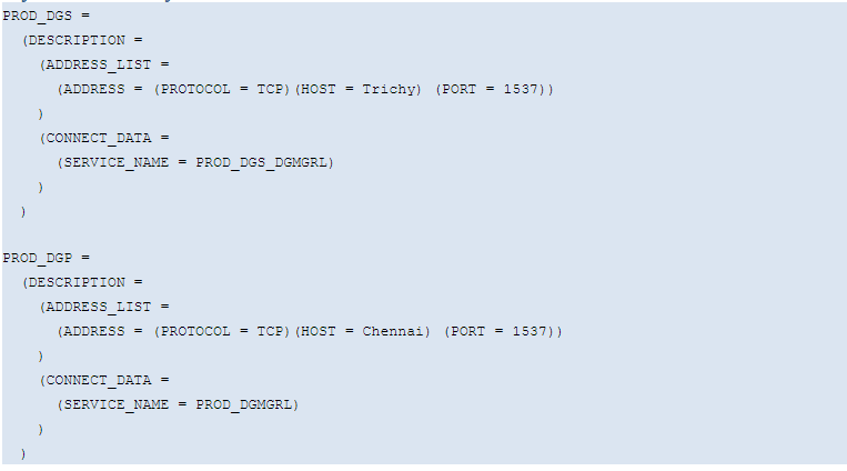 Note: If db_domain parameter is not null, GLOBAL_DBNAME should be like db_unique_name_DGMGRL.db_domain