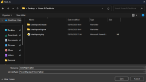 Example: Your team is developing a complex report, and you save the project as a PBIP file named SalesReport.pbip. This allows team members to work on different parts of the project simultaneously and track changes using Git.