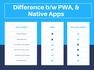 - Native mobile apps on the other hand are created to work ideally on either iOS or Android. Unlike PWA, Native app users will need to download the mobile application from Play store to start using it.