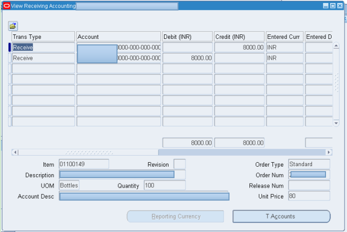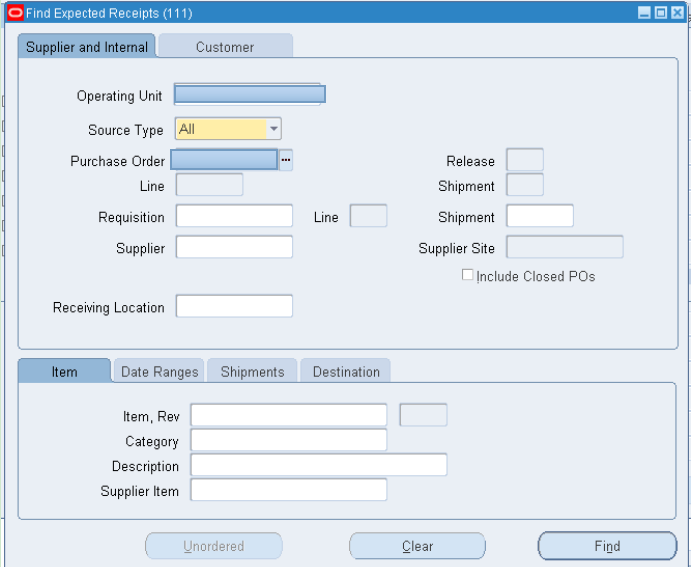Navigation: Oracle Purchasing > Receiving > Receipts