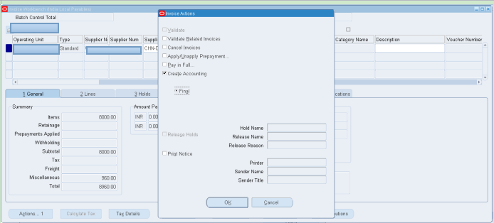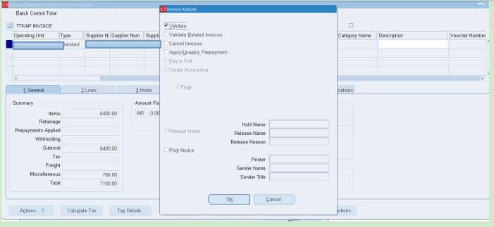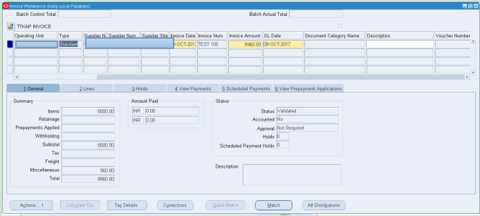Navigation: Oracle Payable > Invoices > Entry > Invoices