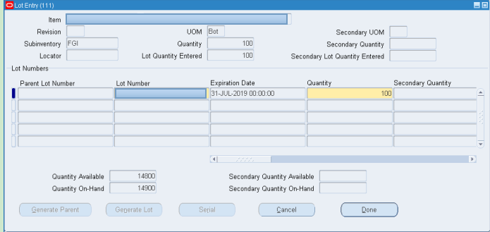 Give Sub-inventory and click on Lot-Serial.