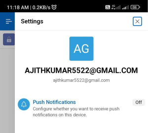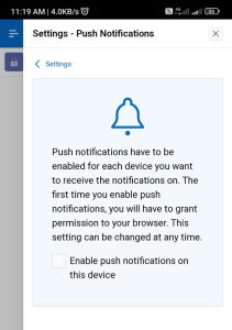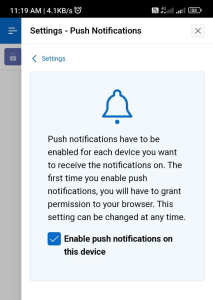 • When we click the push notification, we get an enabled checkbox for push notifications.