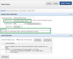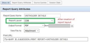 Ø Edit report query attributes then set report layout as “COB” (What we have created report layout for this report query)