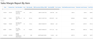 This report is used on an everyday basis by the customer to check the item sales margin details.