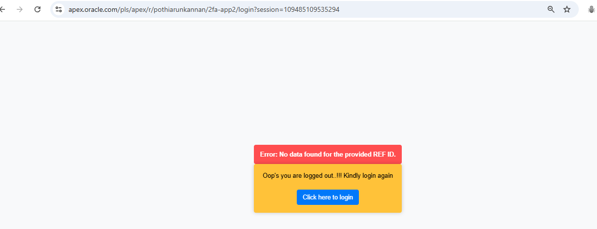 <a href=”https://apex.oracle.com/pls/apex/r/pothiarunkannan/2fa-authentication/login?”>Click here to login</a>
