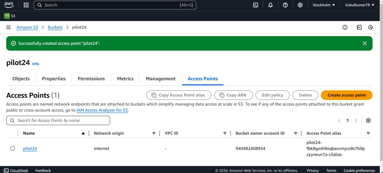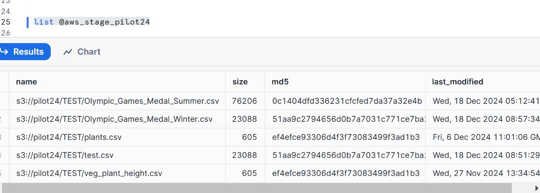 create or replace stage aws_stage_pilot24 storage_integration = aws_s3 url = ‘s3://pilot24/’ file_format = csv_format;