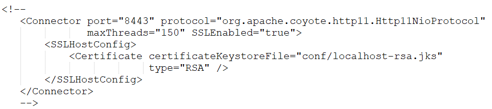2. Configuring Tomcat for using the keystore file, to enable HTTPS