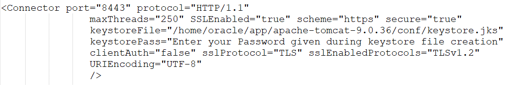 Step 2 — Configuring Tomcat for using the keystore file, to enable HTTPS