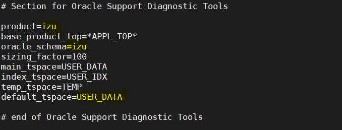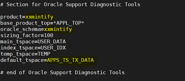 Now replace izu or IZU with your custom top name i.e xxmintify or XXMINTIFY as given below and default tablespae as APPS_TS_TX_DATA