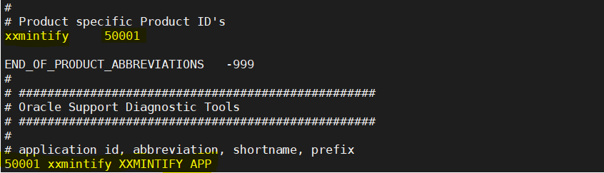 8. Now open xxctprod.txt file and make changes like replace izu to xxmintify ,IZU to XXMINTIFY and application id 278 given in file to you product application id