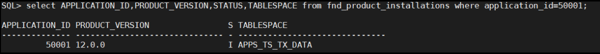 14. Run the following SQL to check the product installations table has one row for your custom product. In condition give 5001 as application_id